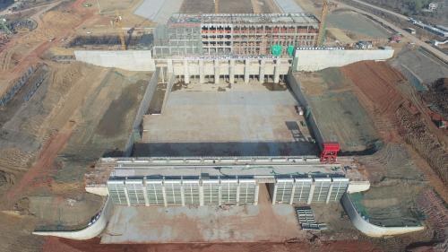 3月6日凌晨5時,引江濟(jì)淮蜀山泵站項(xiàng)目主、副廠房全面封頂。